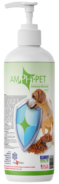 - AmphiPET Immune Booster nanoemulsion liquid is designed to be pumped directly on dry food kibbles, providing vitamins, minerals, prebiotics, amino acids and nutraceuticals that support your pet’s digestive health, immune system, and overall vitality.